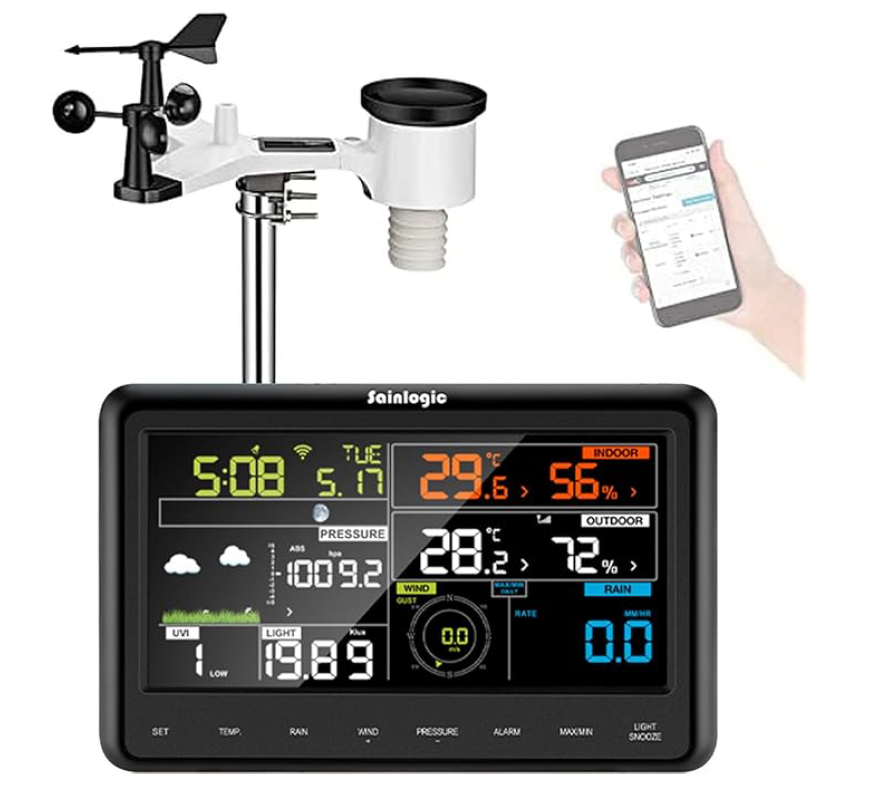 EI modelo de nuestra estación meteorológica es "Sainlogic WS3500", la cual cuenta con varios sensores que nos ofrecen información sobre