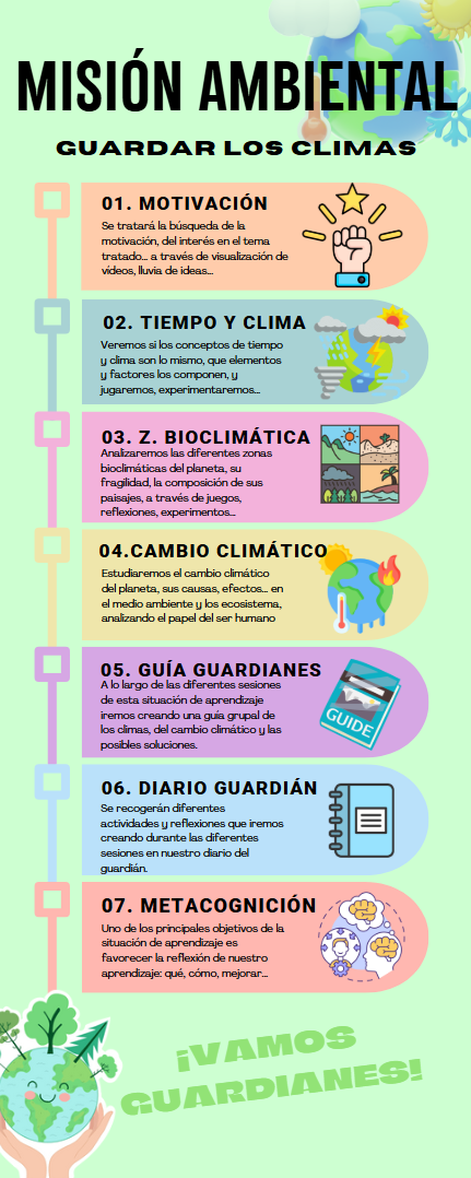 La infografía es como un mapa del proyecto "Guardianes del Clima".